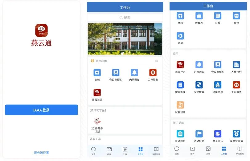 作为服务北大师生的一站式教学、科研、管理协同办公系统,“燕云通”中应用了混合云部署的腾讯会议,基于企业微信的本地化部署和本土化改造,同时实现了与学校一站式办事服务的北大APP和各教学办公平台相联通,助力北大师生效率升级。