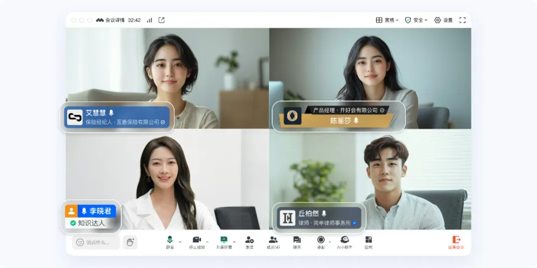 展示出职位头衔,人员众多时,也能快速识别出对应模块的负责人,还能减少非企业内成员冒名顶替的可能性,让会议更安全。