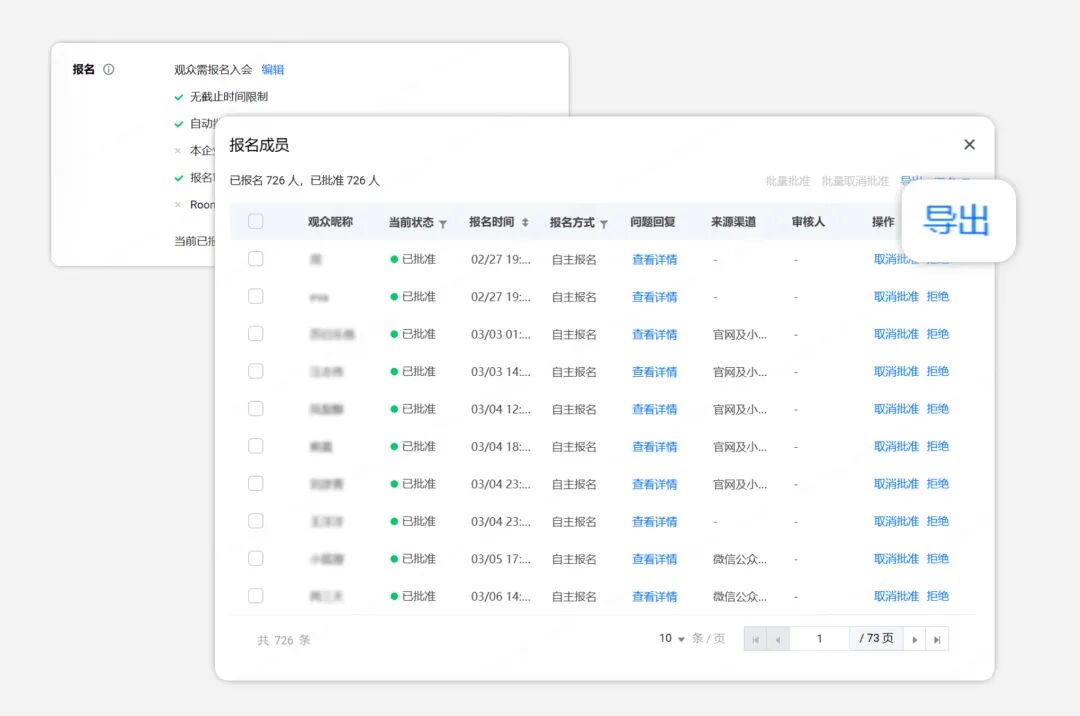 在品牌活动的全流程中, 会前报名管理是筛选高价值客户、沉淀精准线索的核心环节。传统线上工具难以兼顾品牌形象渗透与线索质量把控。腾讯会议Webinar提供了三大核心能力: