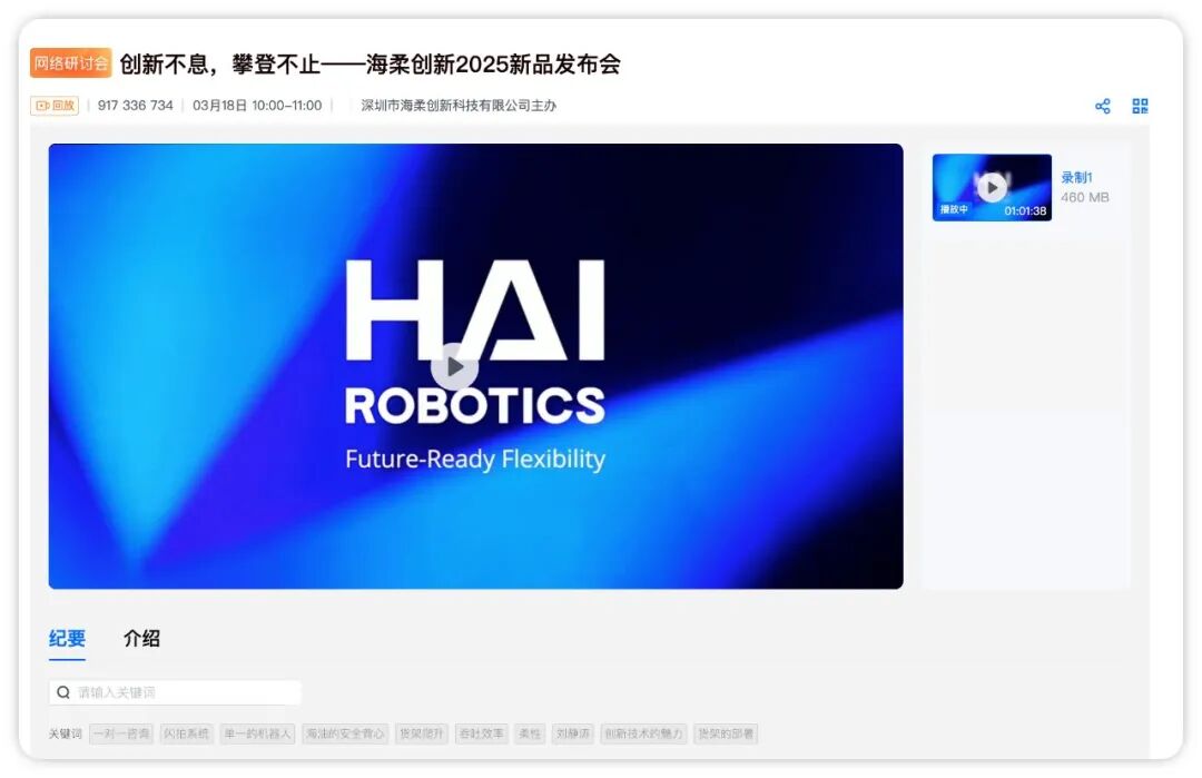 在2025年闪攀系统发布会中,海柔创新用腾讯会议Webinar给出了答案。