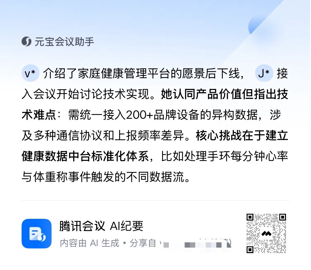 在涉及敏感信息的会议上,你仍可以有选择地分享部分内容进行信息同步。在选取特定段落生成图片时,系统会自动对提及的参会人名称进行脱敏处理(用*替代),在满足信息同步需求的同时,充分确保隐私安全。