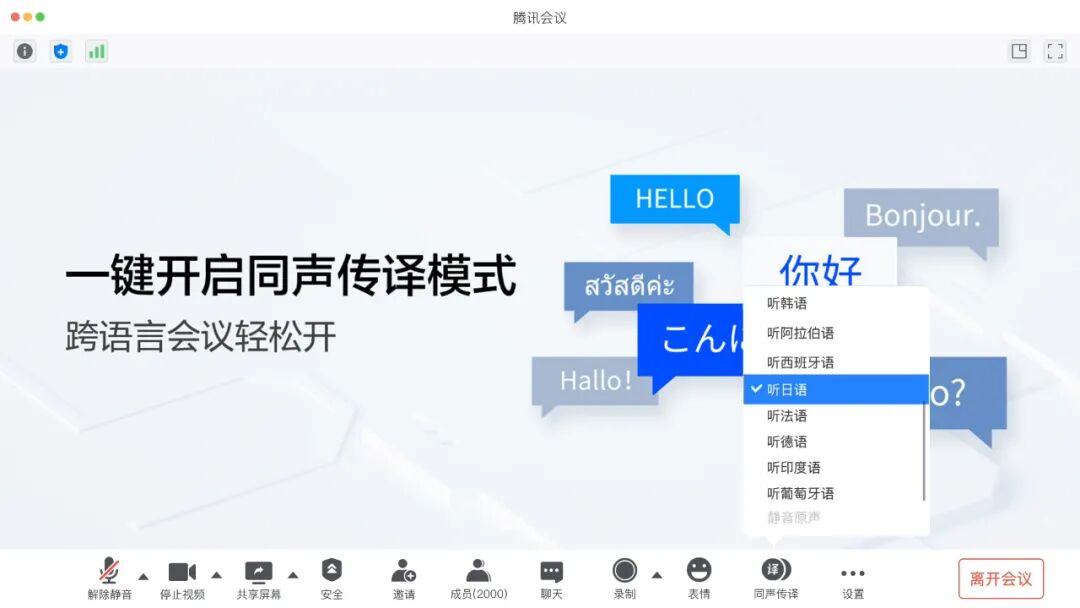 腾讯会议企业版支持设置同声传译员,还能同时多语言传译,辅助与会者更好地理解会议内容,不同的传译模式彼此互不干扰,不打断会议进程。
