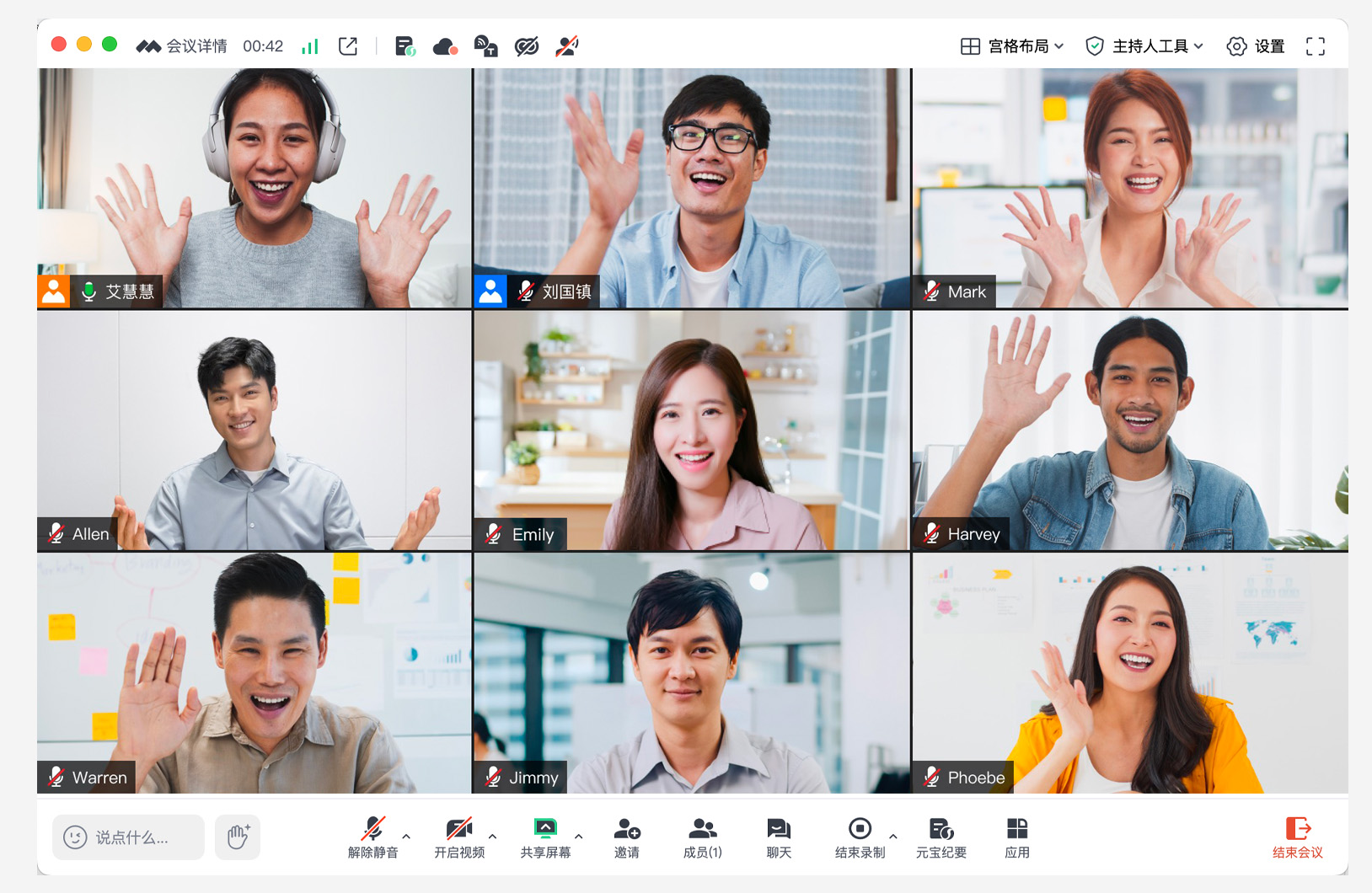 联席主持人拥有主持人同等权限,可以对参会者的开关麦、视频以及其他协作权限进行管控,并审批等候室中的人员,减轻主持人负担,更多的联席主持人席位,将进一步满足大型会议的会管会控需求,提升会议效率。