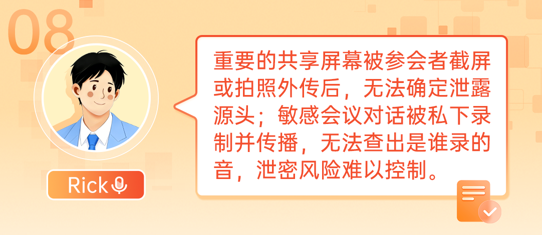 「音频水印」:在每位参会者的音频流中,无感嵌入唯一的数字标识。一旦会议录音被泄露,可精准溯源至具体参会者,实现隐形追踪。