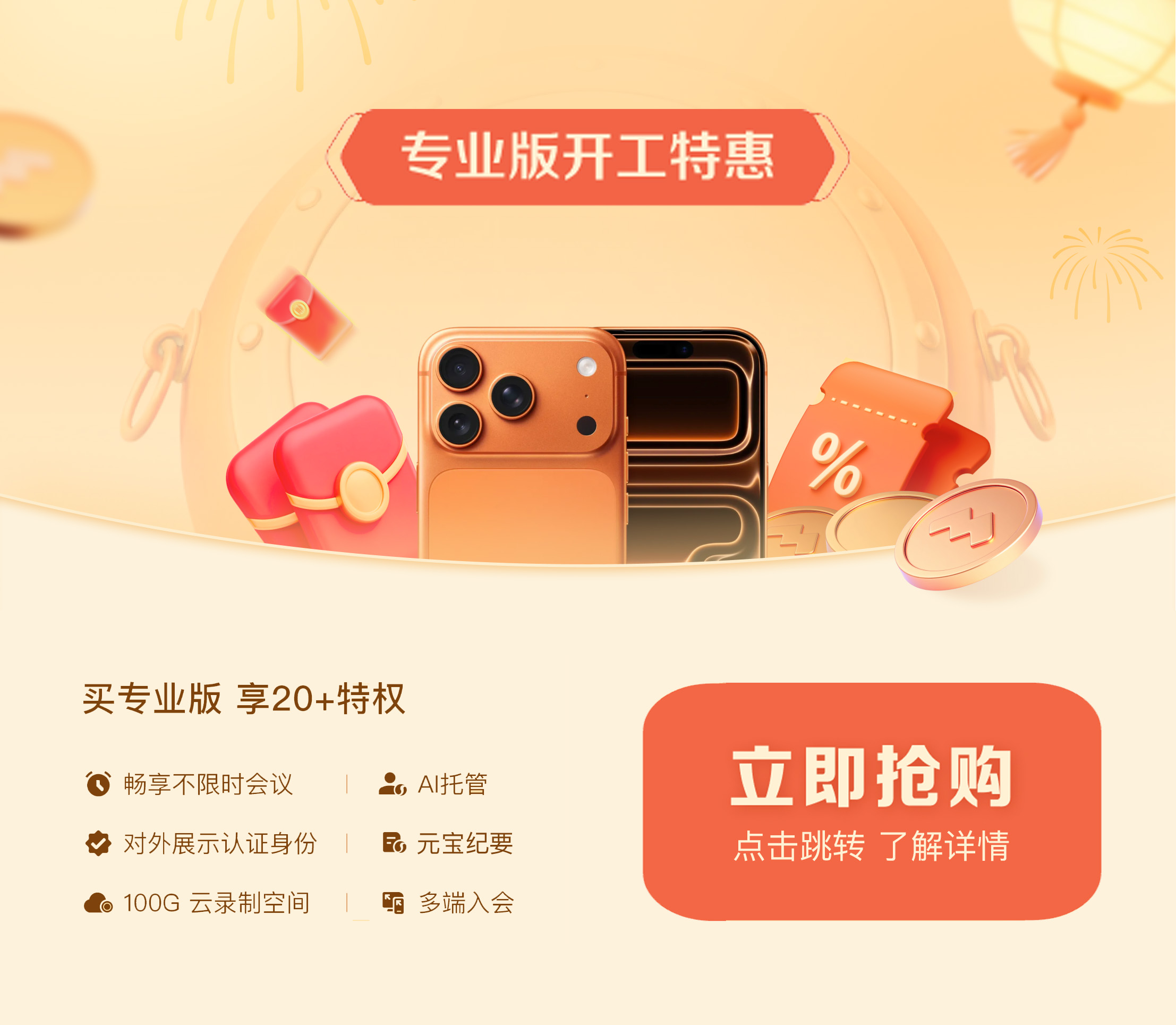 万马奔腾开新局,腾讯会议助您高效启航!腾讯会议专业版「开工特惠」限时开启,为您送上开年第一份效率礼包🎁!