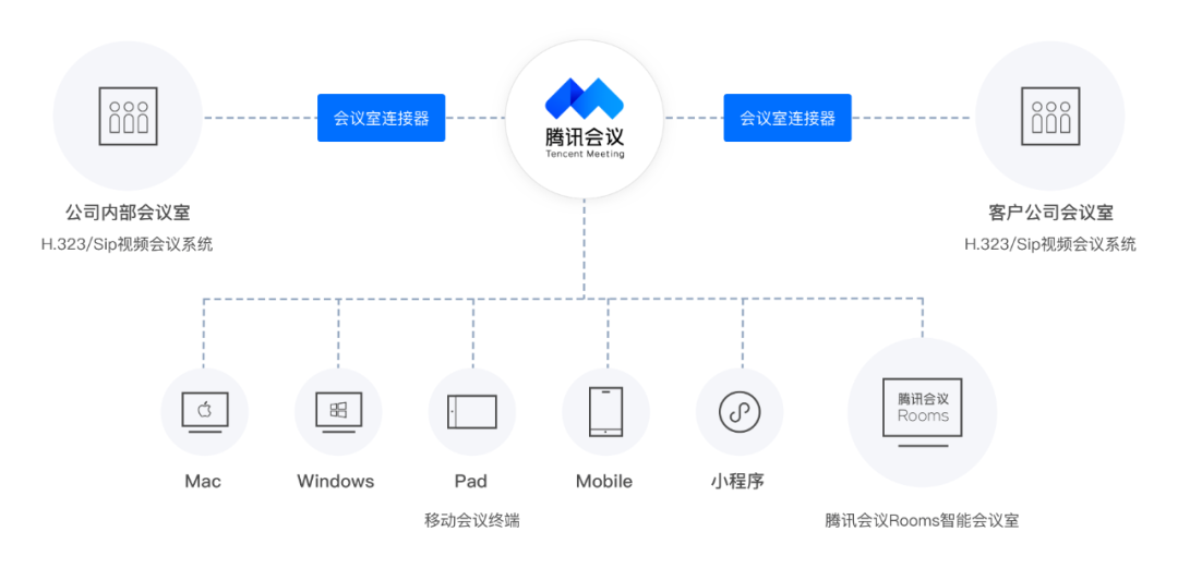 随着跨企业、跨区域协作的普及,许多企业选择了接入腾讯会议的会议室连接器服务,轻松实现会议室与移动办公的无缝连接,轻松扩展设备的会议能力,同时提高设备利用价值,开启高效云端协作。