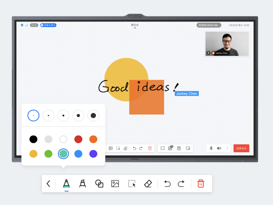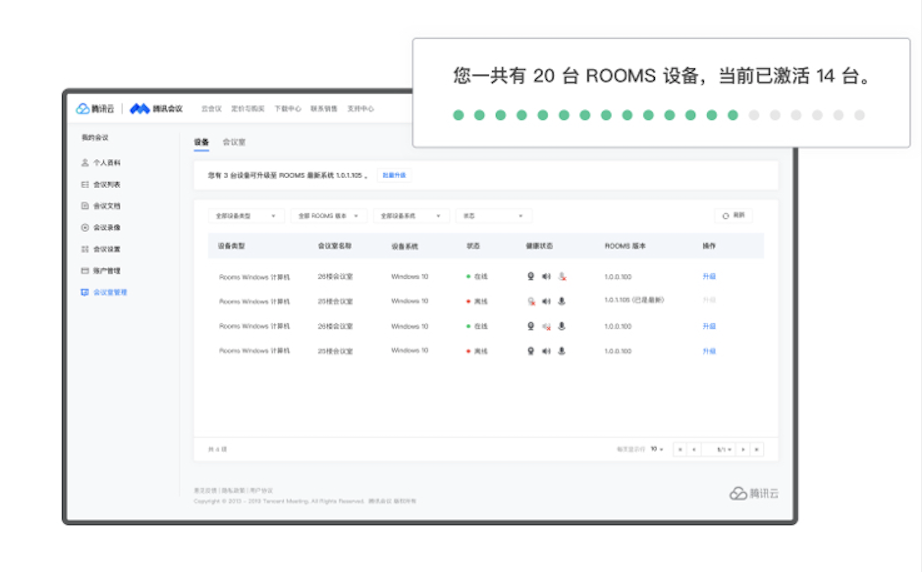 无论是和出差的同事沟通待办,还是与海外生意伙伴谈笔大订单,走进安装 腾讯会议Rooms 的云端会议室,即刻开启现代云端会议室体验: