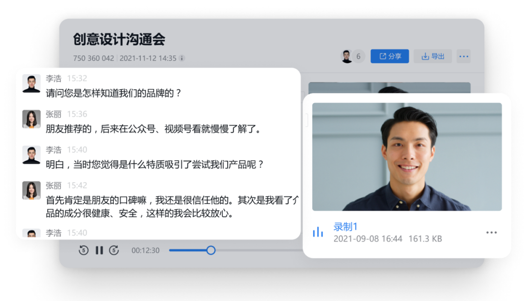录制沉淀内容还能分享给没到场的同事,助于团队快速推进,确保会议结论有落实、有跟进。