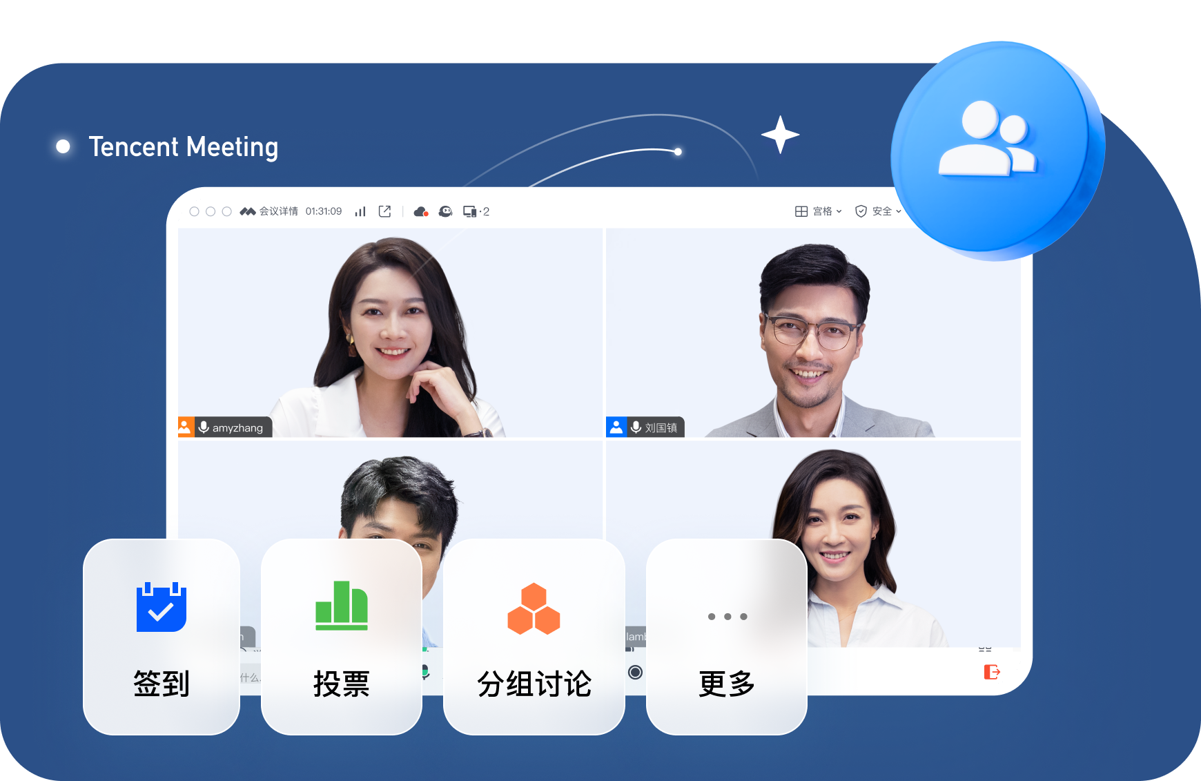 教师可以通过会议中签到、点名、投票、抢答、智能提炼讨论点等功能与学生灵活互动,增强课堂活跃度与学生积极性。