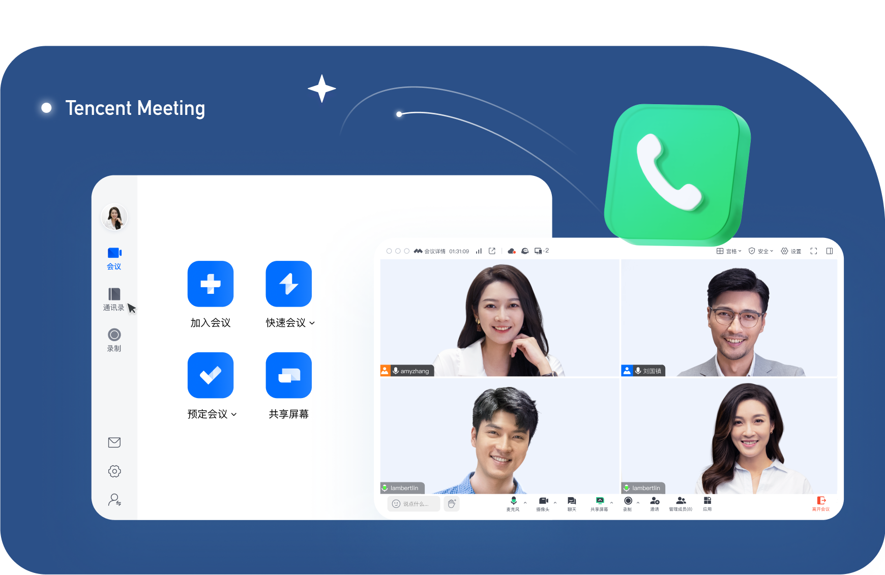 在线会议+PSTN电话呼叫通过网络方式提高了同时参会人数和同时开会数量。并且演讲者可以在会中共享ppt,分发路演资料,主办方可以实时管控参会者情况,让路演更合规、保密。
