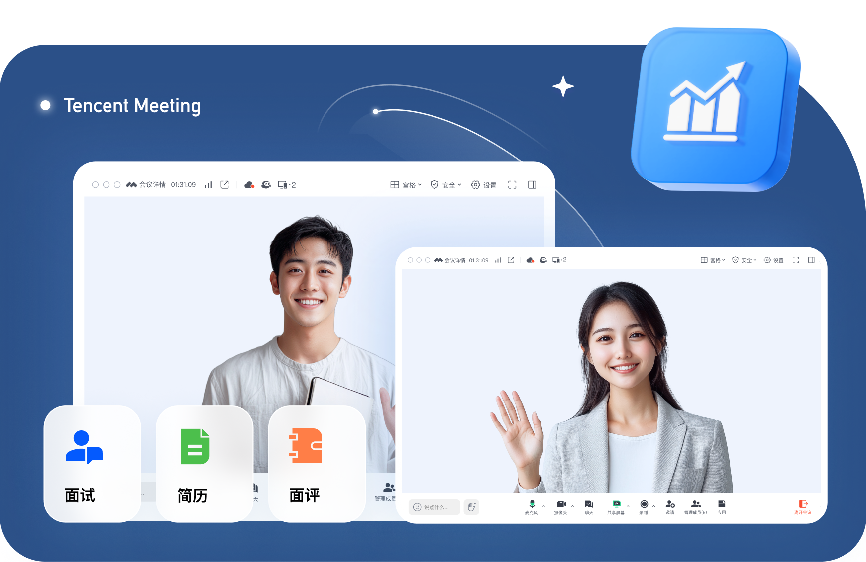 腾讯会议可通过扩展应用实现面试+简历+面评三合一,体验更贴心。