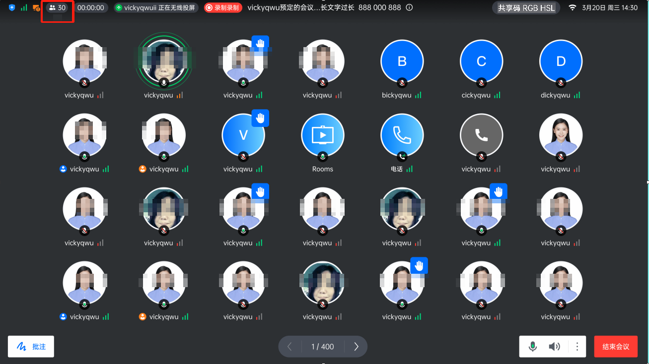 会议中,您可以在主界面的左上角可查看当前会中成员总人数。