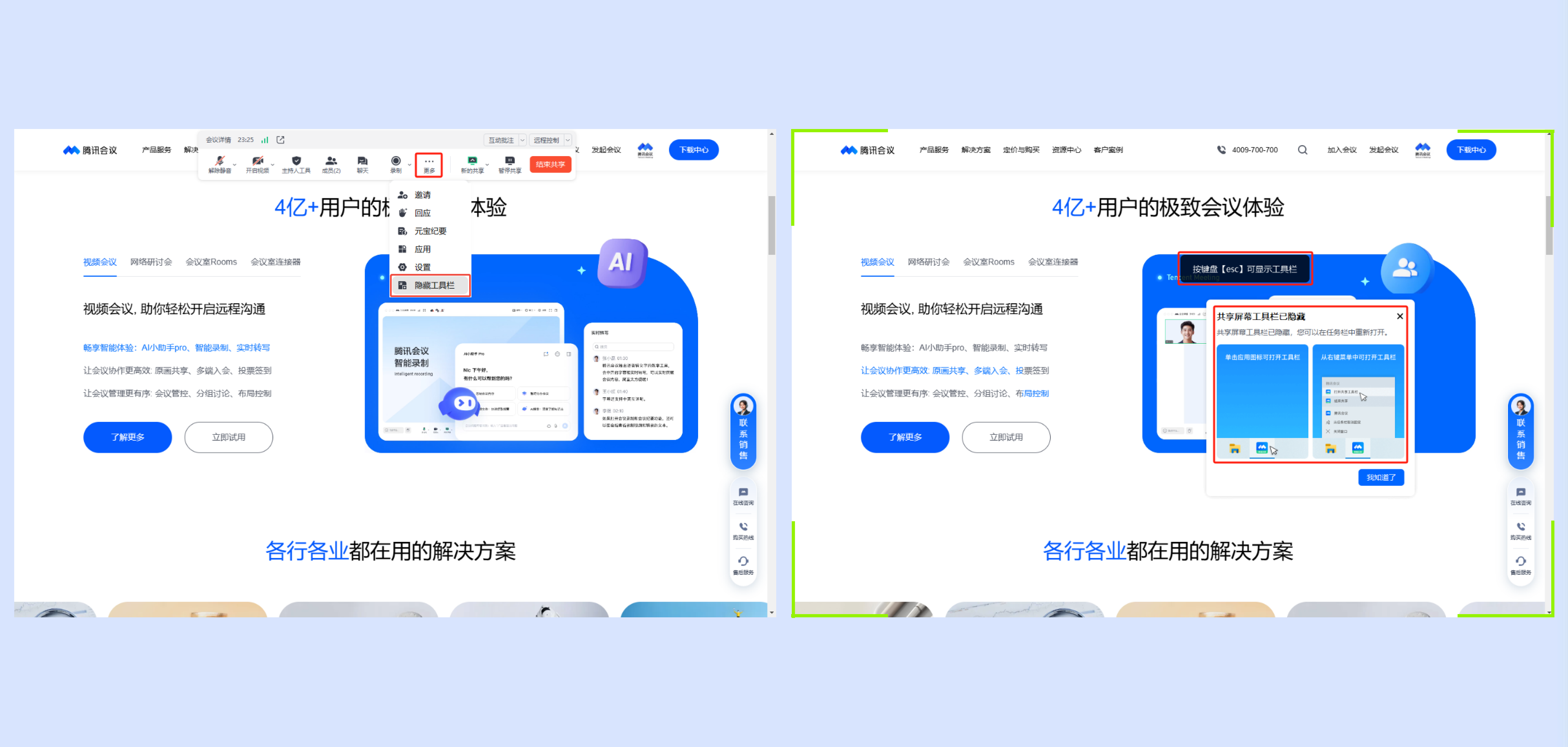 3.31及以上版本支持共享屏幕时隐藏工具栏